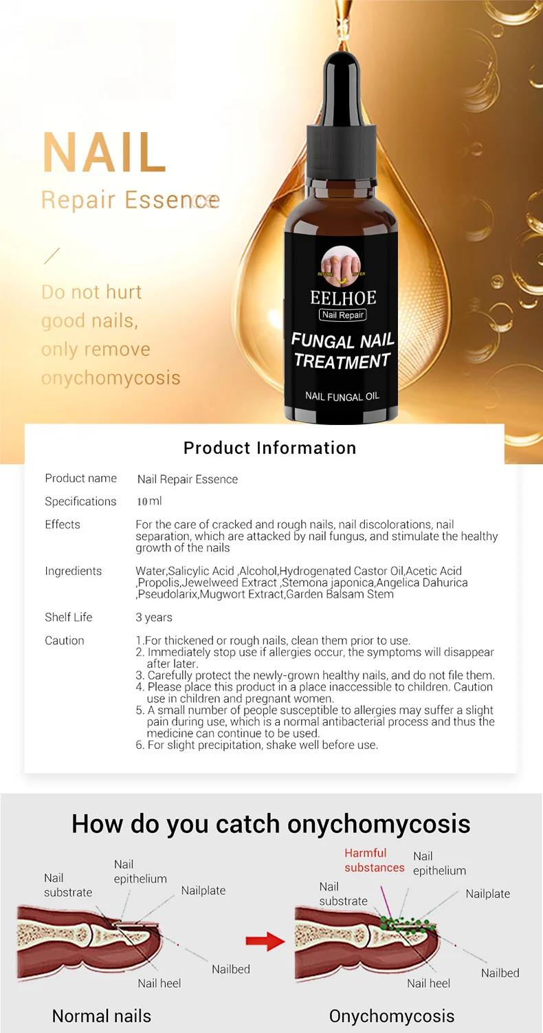 It can treat onychomycosis, atrophy, unevenness, thickening, fracture, yellowing, shedding, etc. caused by fungal infections
