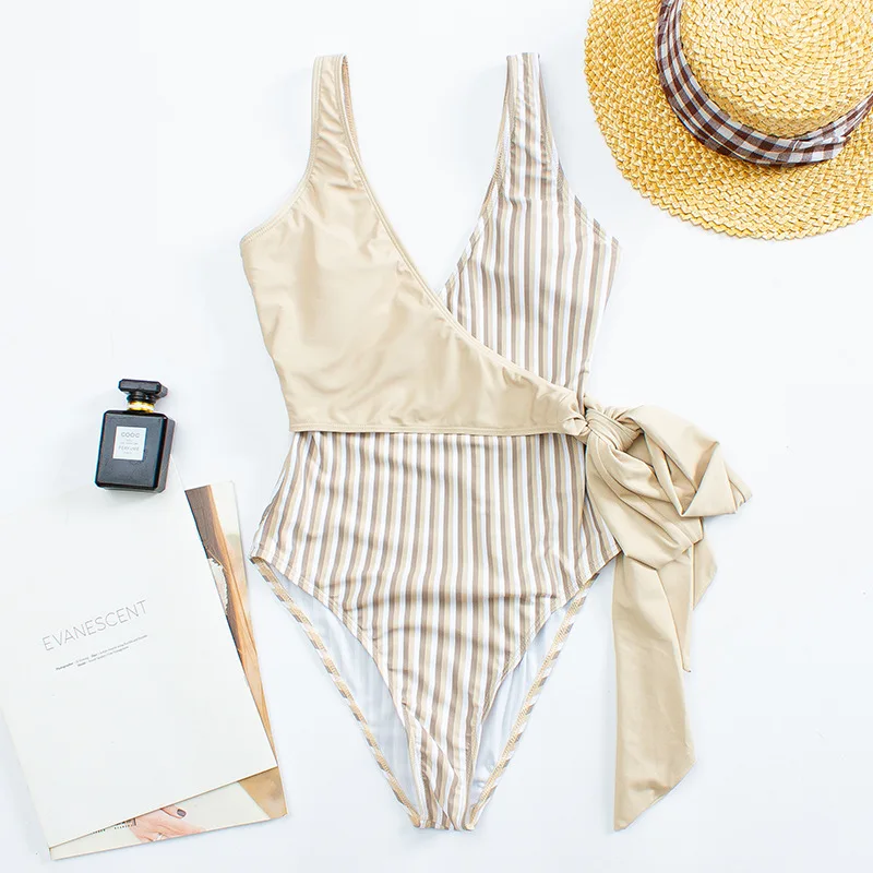 Слитный купальник Ashgaily с глубоким V-образным вырезом и бантом y...