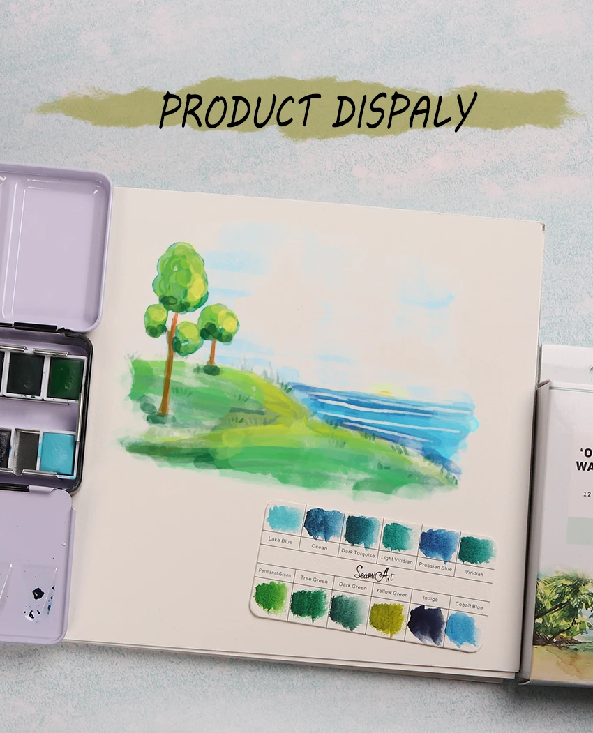SeamiArt Акварельная краска, однотонные прозрачные акварели, дорожная ручная учетная запись, акварельная краска, иллюстрация