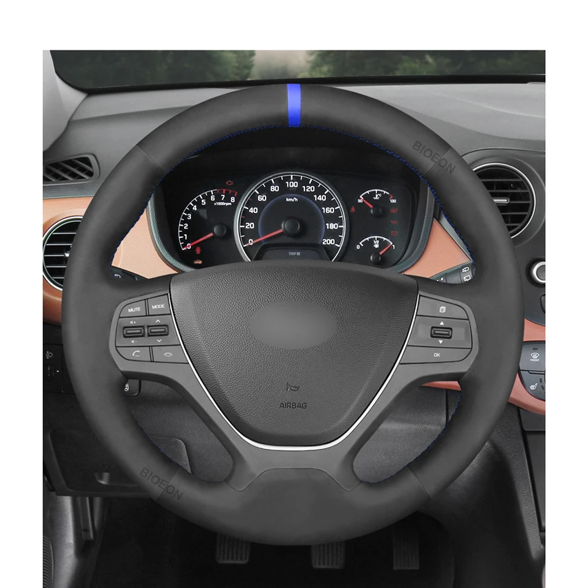 Оплетка рулевого колеса ручной работы из черной замши для Hyundai i10 2013 2014-2020 i20 2015 2016 2017 2018 2019-2020