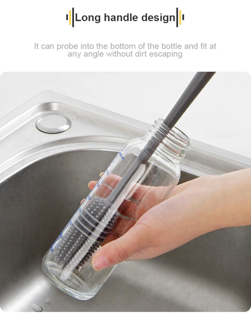[Grime Free & Scratch Safe] мягкие, гибкие силиконовые щетины нашей чистящей щетки для бутылок с водой жестки, но достаточно мягко, чтобы оставить вашу любимую вазу, стеклянную бутылку воды, кувшин, И стеклянная посуда чистая и без царапин.