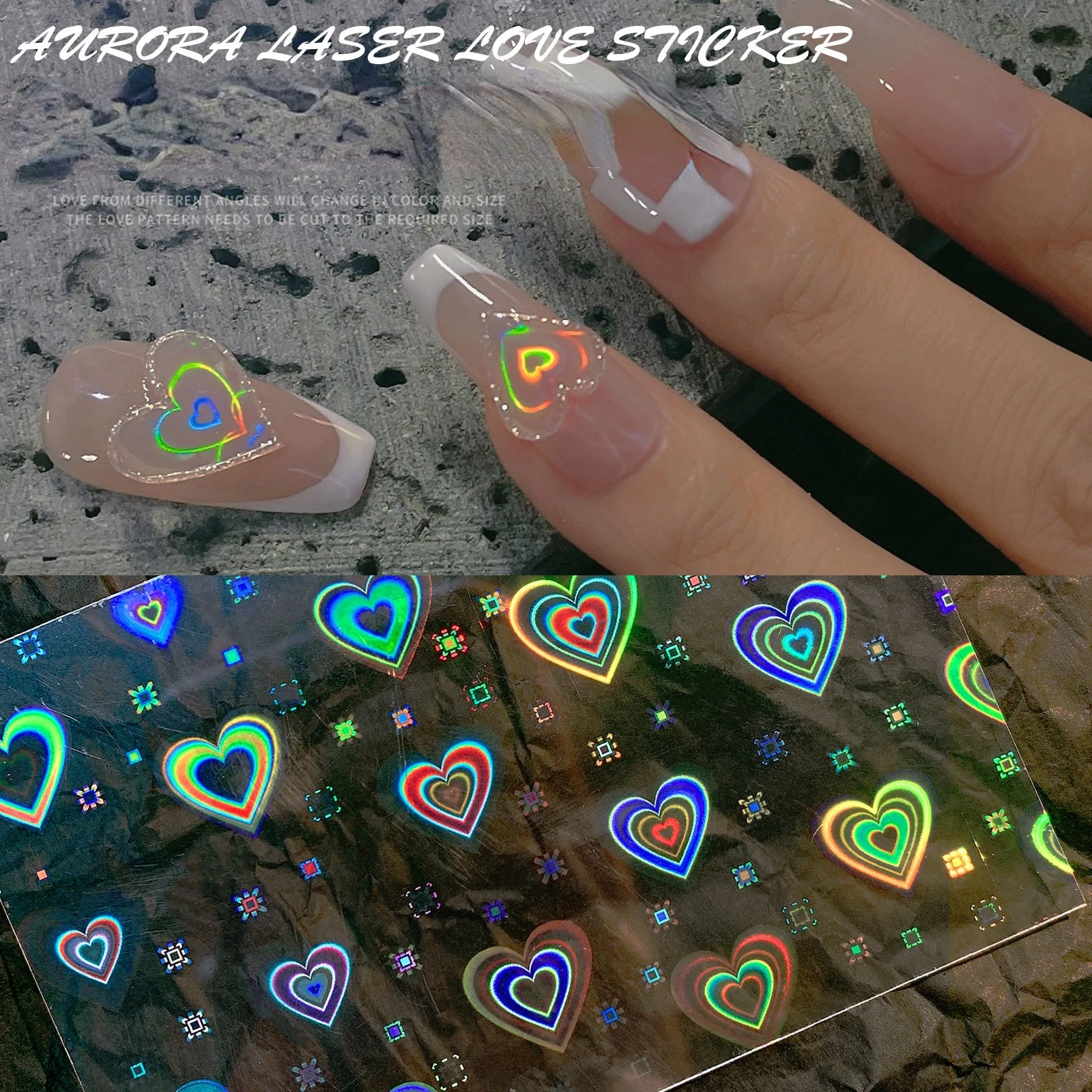 2 листа Аврора лазер сердце дизайн ногтей Наклейка 3D динамические ...