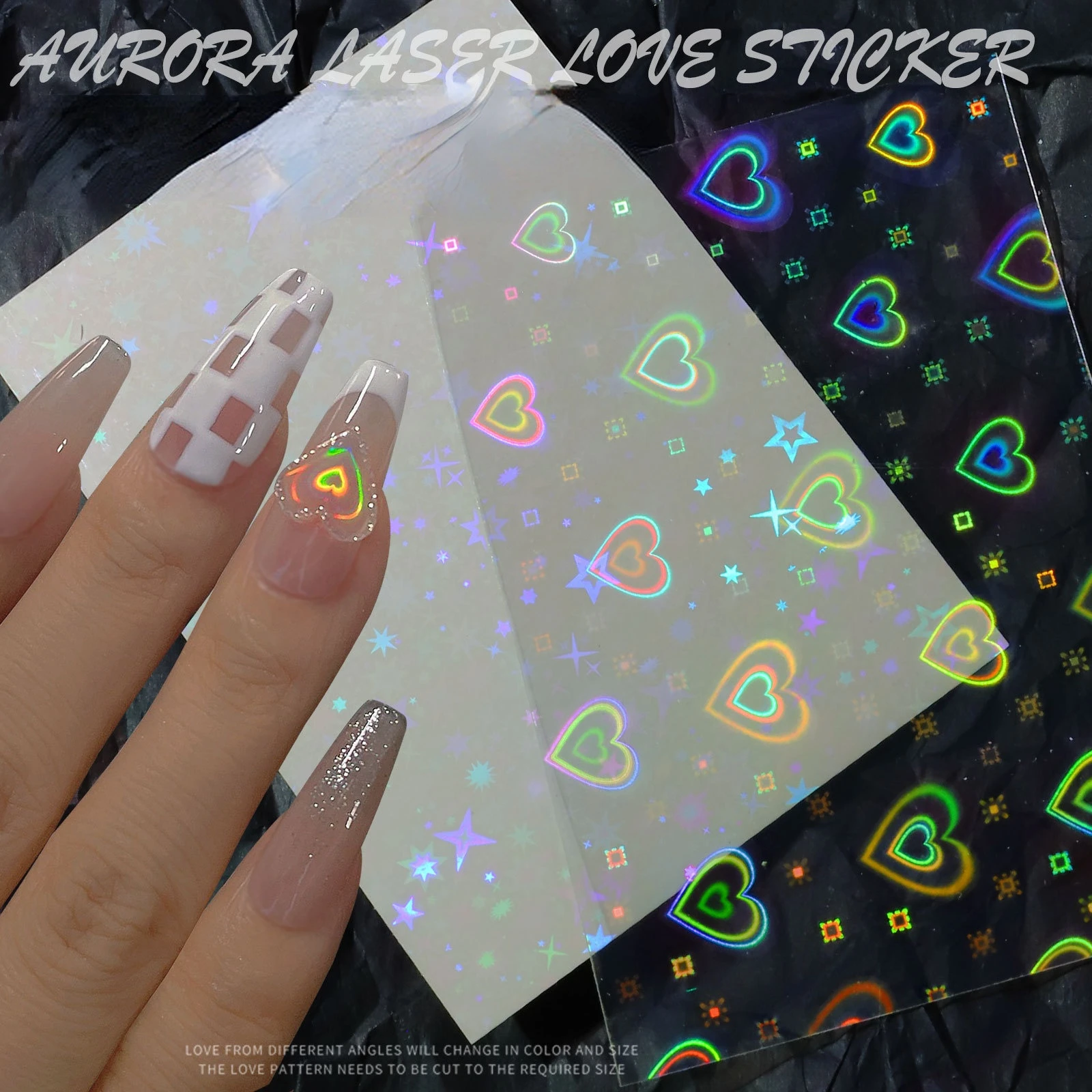 Аврора лазер Сердце ногтей художественная наклейка Блестящий динами...