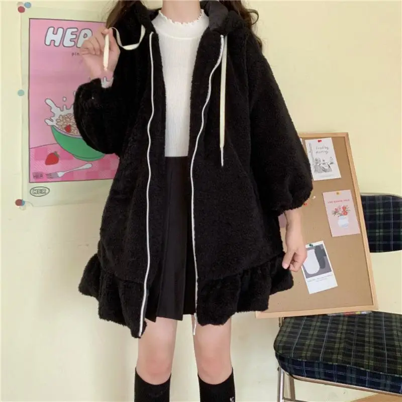 2. Особенности: Kawaii, animal, rabbit, худи для девочек, плиссированный подол, капюшон на молнии и молнии, милый дизайн, повседневный стиль, длинные рукава, большой размер, новая толстовка с капюшоном.