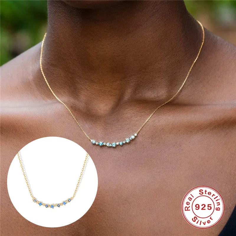 Женское Ожерелье BOAKO 9Plata De Ley 925, ювелирное изделие на шее, цепочка с изумрудной радугой, CZ колье до ключиц, Mujer Collares Bijoux