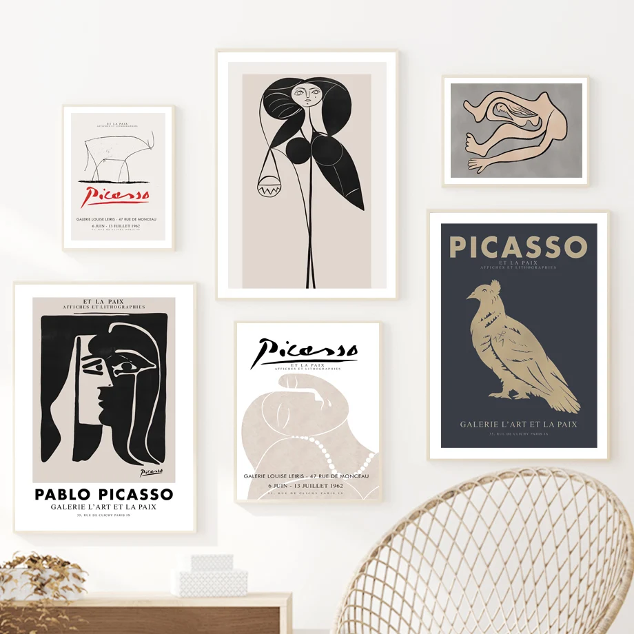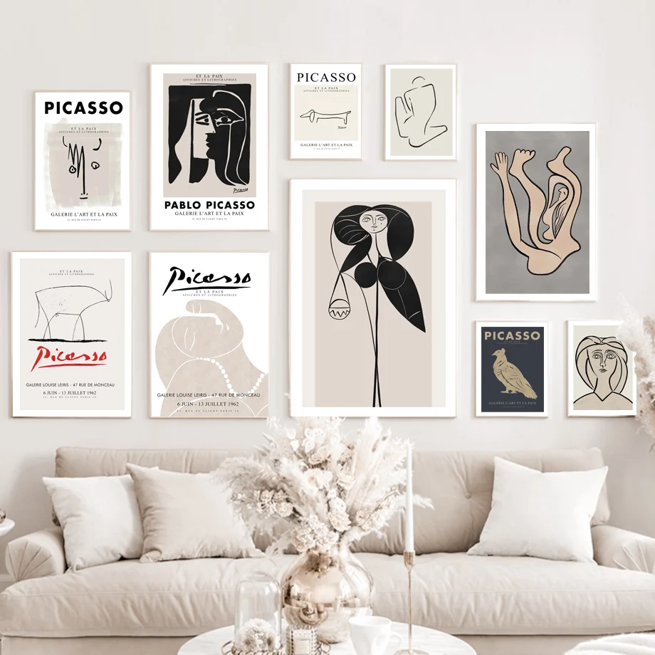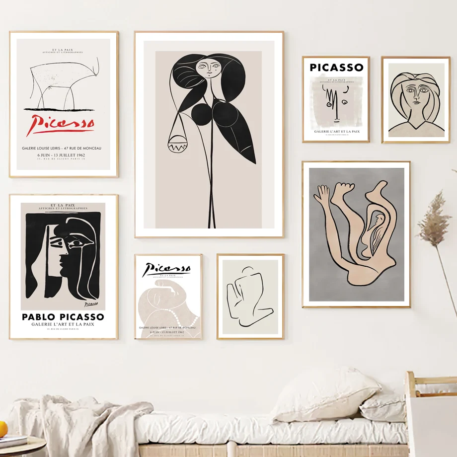 Линия Пикассо, винтажная абстрактная настенная Картина на холсте, скандинавские постеры и принты, настенные картины для декора гостиной