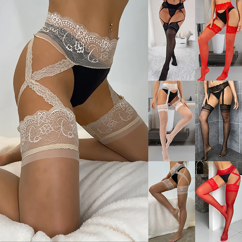 Пикантные кружевные чулки, нижнее белье, пояс с подвязками, эластич...