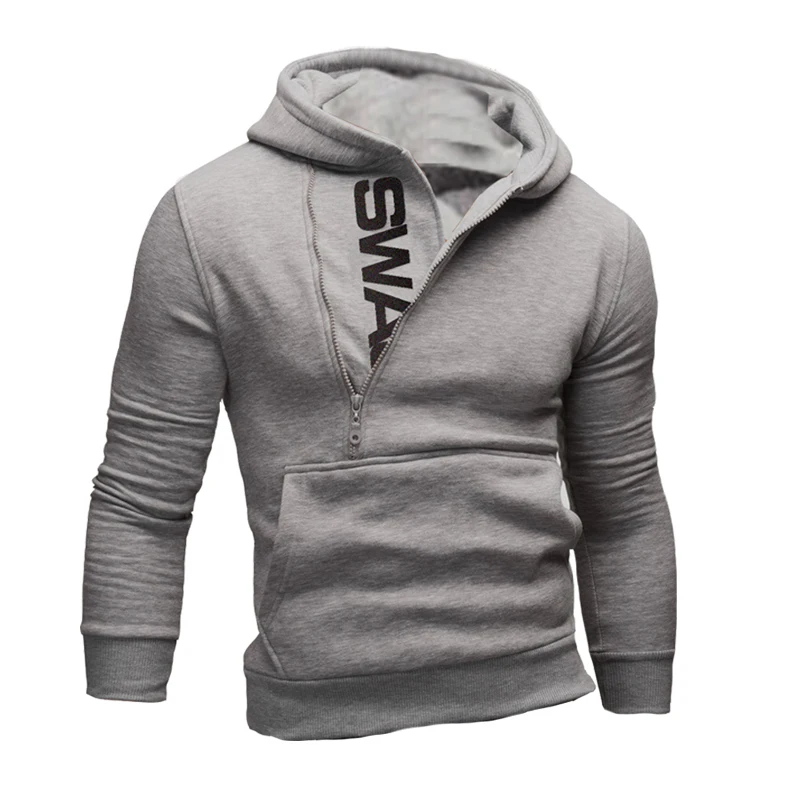 Толстовка мужская с капюшоном, Модный свитшот с надписью, молния сб...
