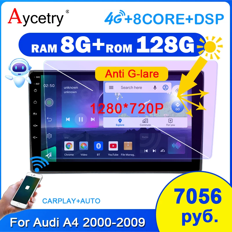 автомагнитола 2дин андройд 10 с экраном магнитола для Audi A4 B6 B7...