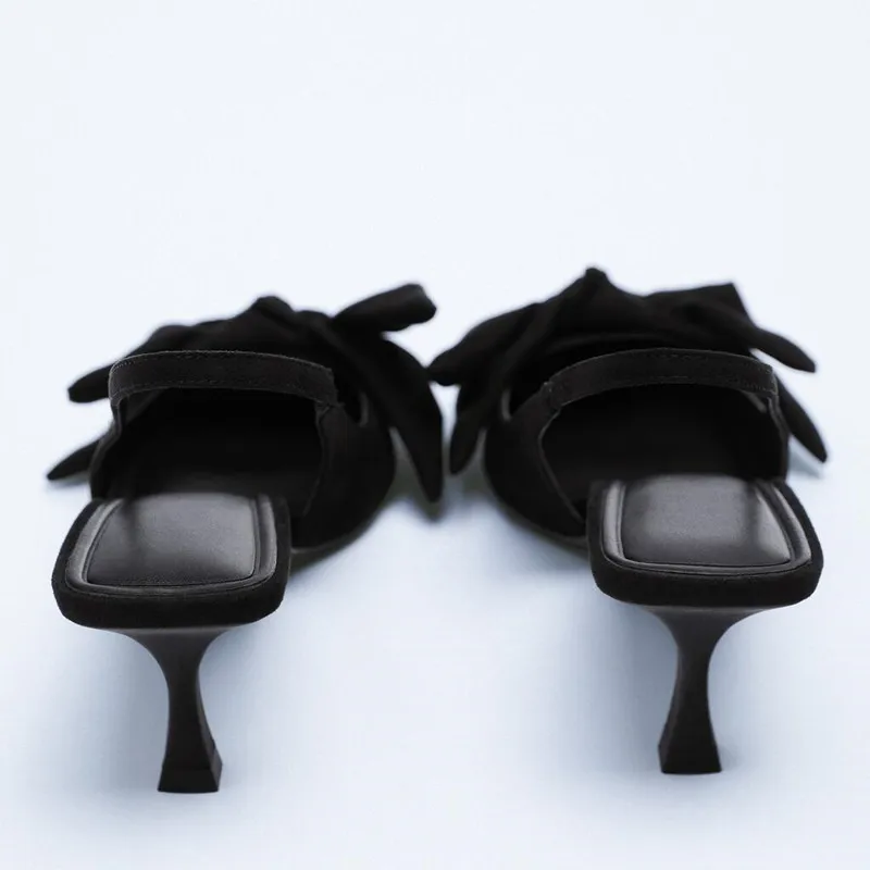Женские туфли на шпильке, элегантные черные туфли с бантом на высок...