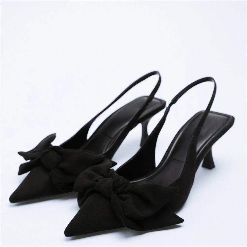 Туфли-лодочки женские с бантом, модные сексуальные элегантные черные туфли на тонком каблуке, женская черная обувь