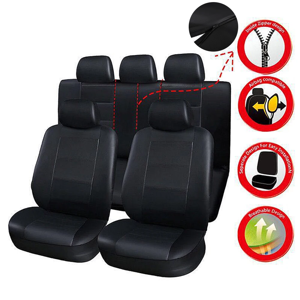 Материал-прочный кожаный материал, водонепроницаемый и легко чиститсяПодходит практически для всех транспортных средств, как для передних, так и для задних сиденийБыстрая установка-надевайте и снимайте в течение 3 секундЛегко складывается для хранения, эластичный ремешок для завязыванияС застежкой-молнией-задняя крышка сиденья имеет дизайн молнии, не влияет на использование держателя чашки