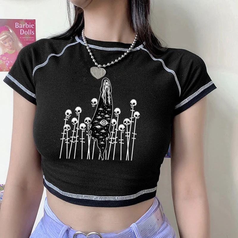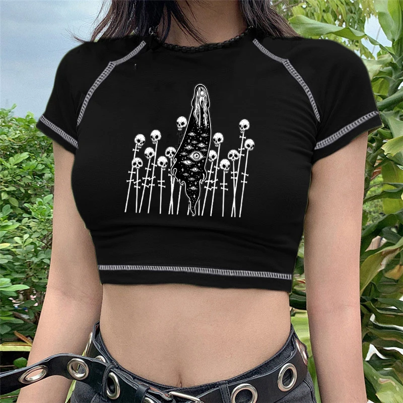 Кроп-топы с графическим принтом и надписью, Готическая футболка с к...