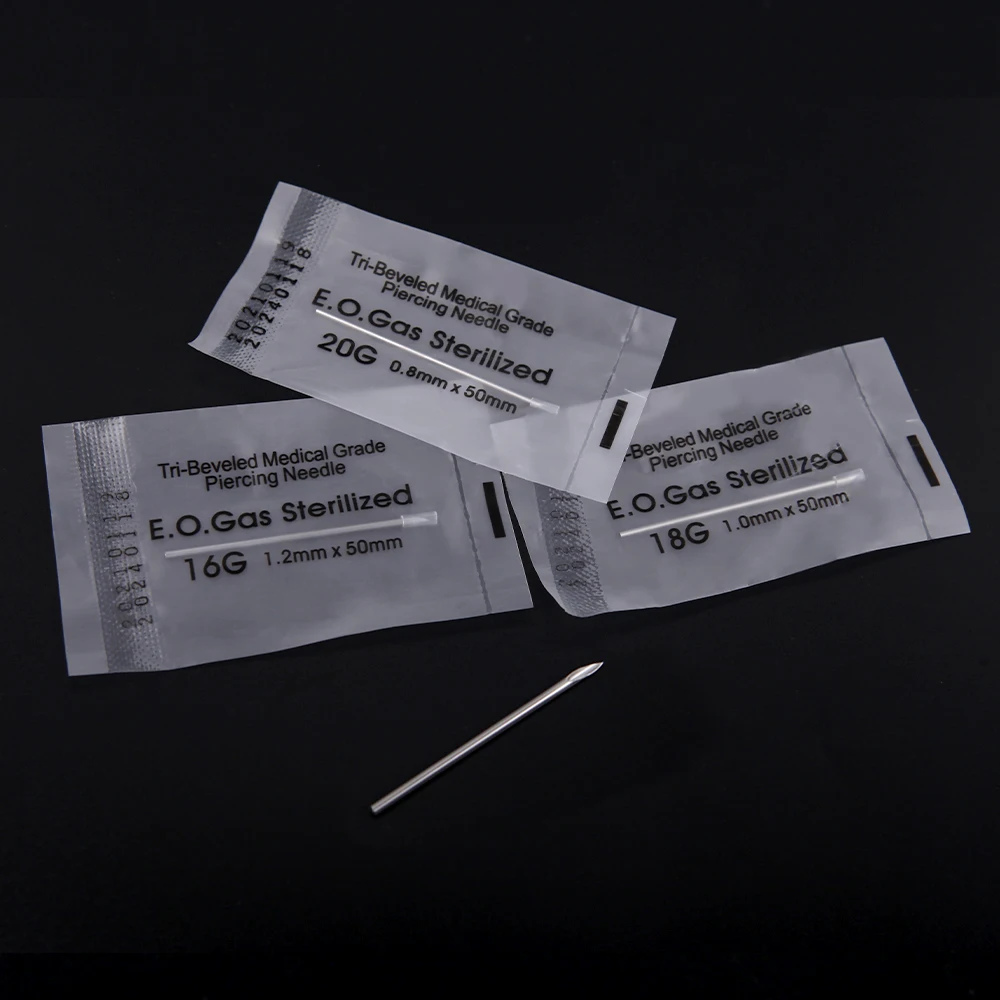 100 шт., Одноразовые стерилизованные иглы для пирсинга, из хирургической стали
