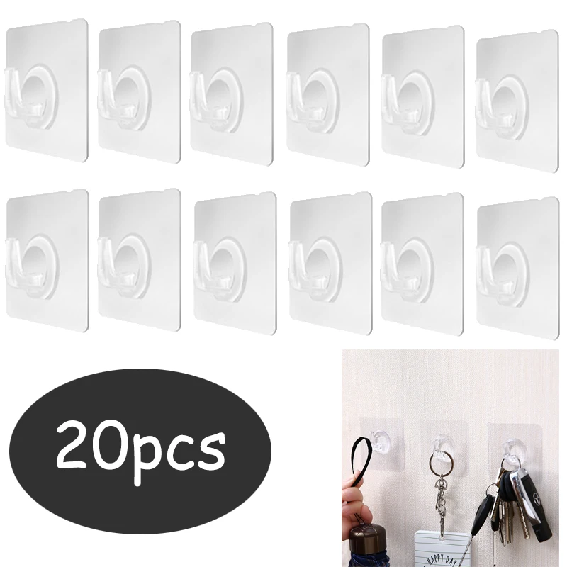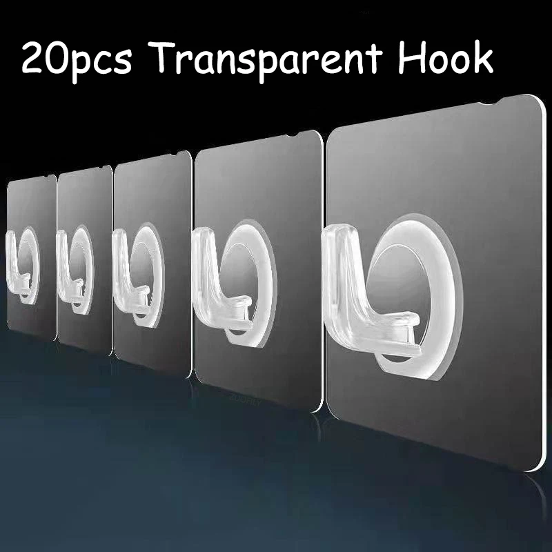 20 шт./лот, прозрачный крепкий самоклеящийся настенный крюк, дверные вешалки, крючки, настенная стойка для хранения, кухонные туалетные аксессуары для ванной комнаты