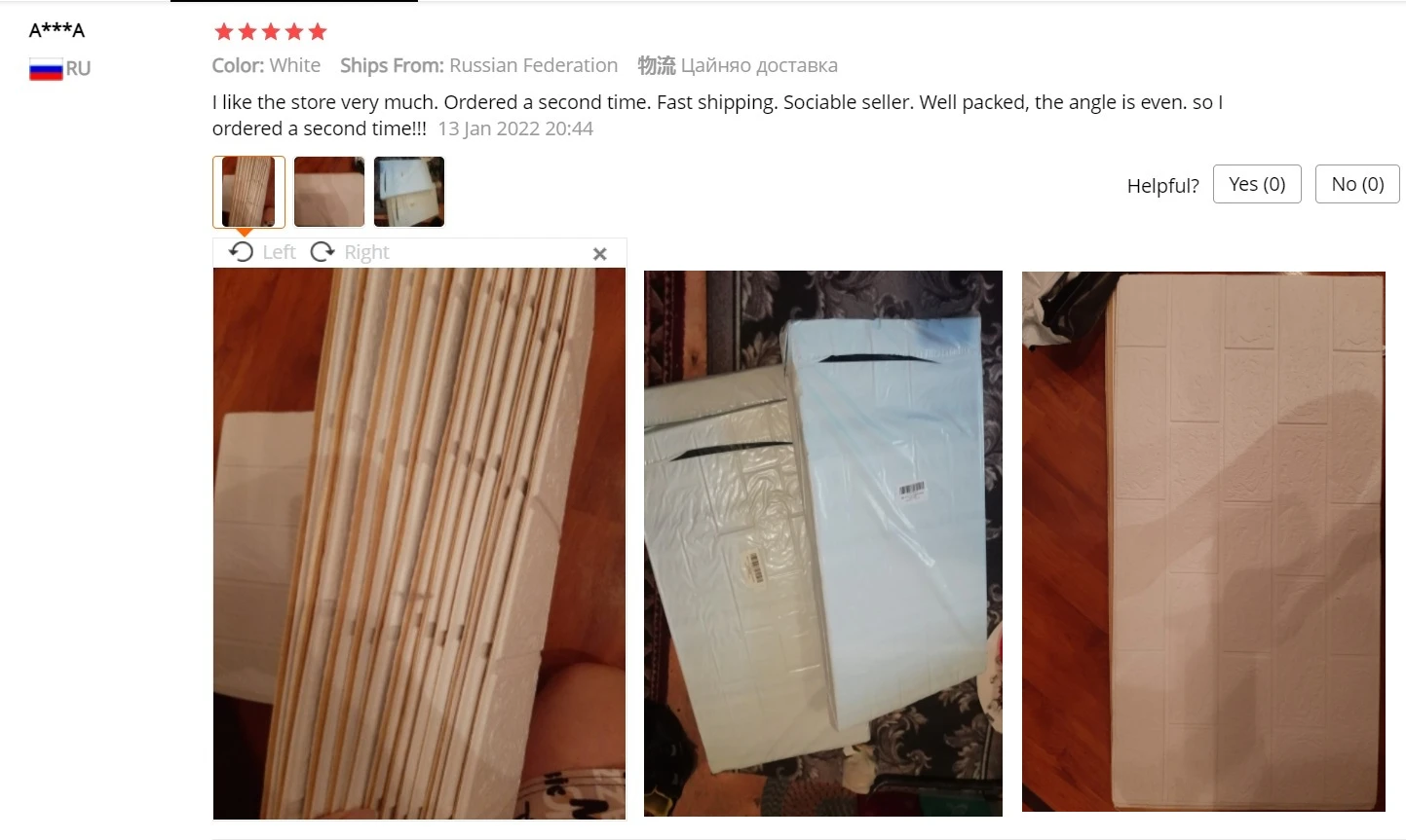 Заказом довольна, все пришло вовремя, товар хорошо упакован, не помят, клеится отлично, я клеила на вагонку, спасибо продавцу!