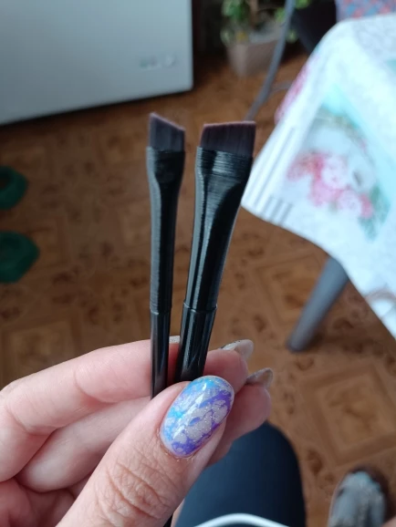 Был заказан набор из 2х разных по размеру кистей, а пришёл с 2я одинаковыми! По качеству- очень тонкая палочка, ворс держит форму! Линия тонкая
