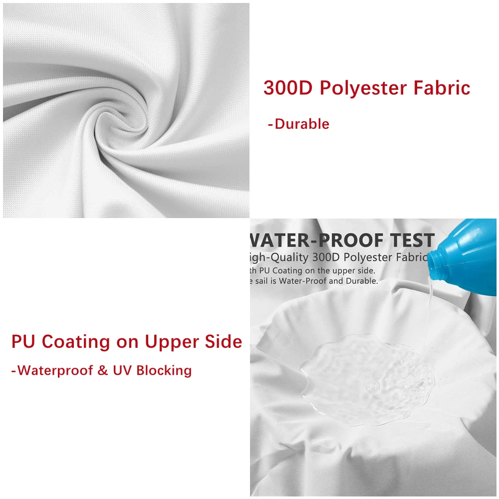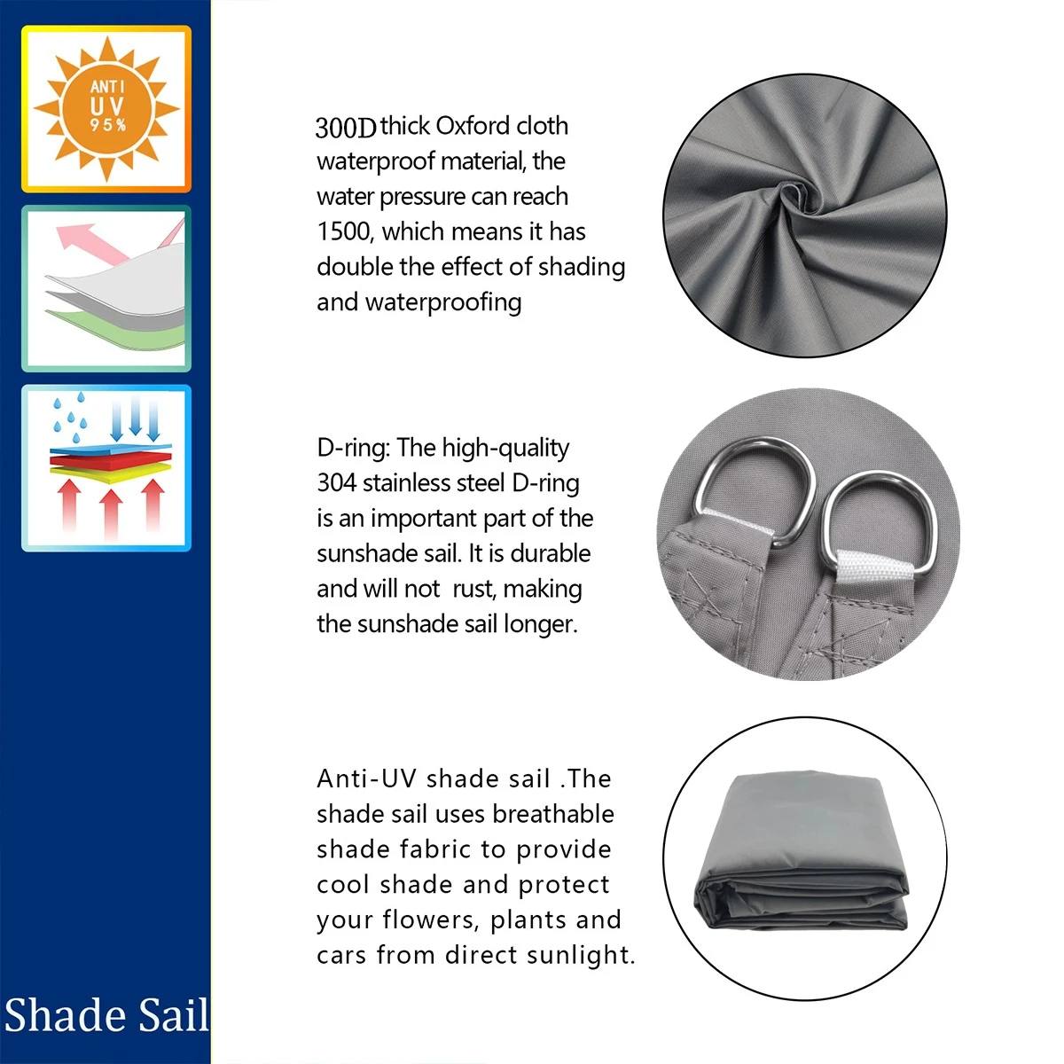 Вместо того, чтобы скрываться в течение лучших частей дня, с нашим козырьком паруса вы можете провести время вне дверей, наслаждаясь прекрасной погодой. Теневое укрытие обеспечивает 95% УФ-блок.