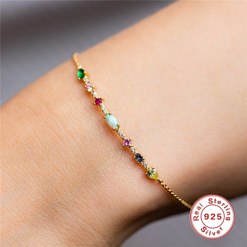 Женский браслет из серебра 925 пробы с радужным цирконием