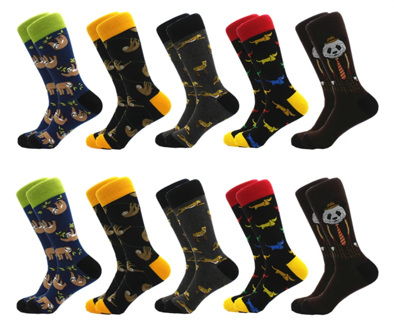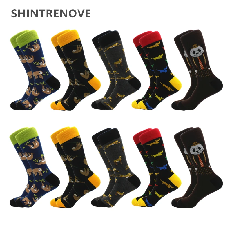 10 партлот счастливые мужские носки повседневные носки из чесаного хлопка цветные носки с принтом животных высокое качество компрессионные фотоподарки