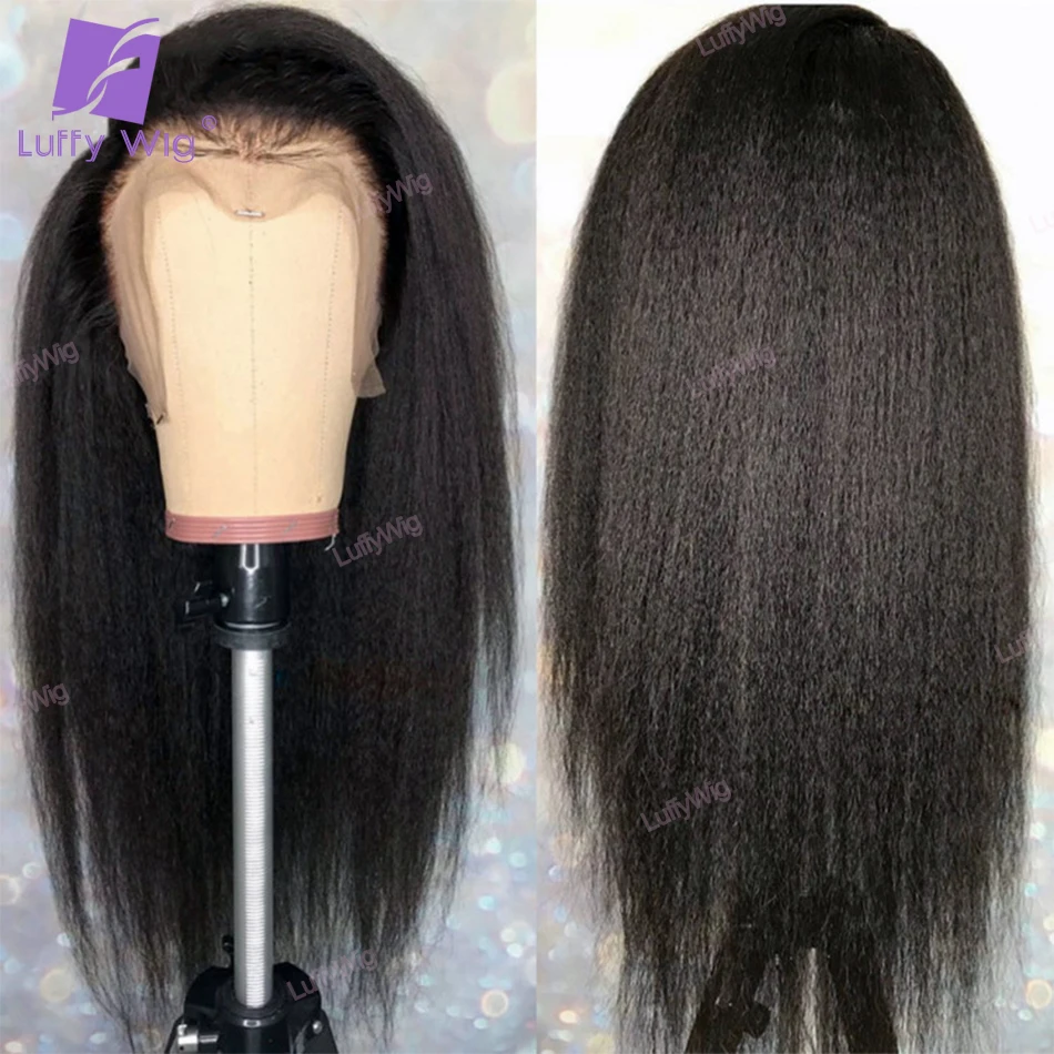 13x6 Yaki прямой парик на сетке спереди бразильские Реми человеческие волосы Hd прозрачные парики на сетке без клея предварительно выщипанные для черных женщин Luffy