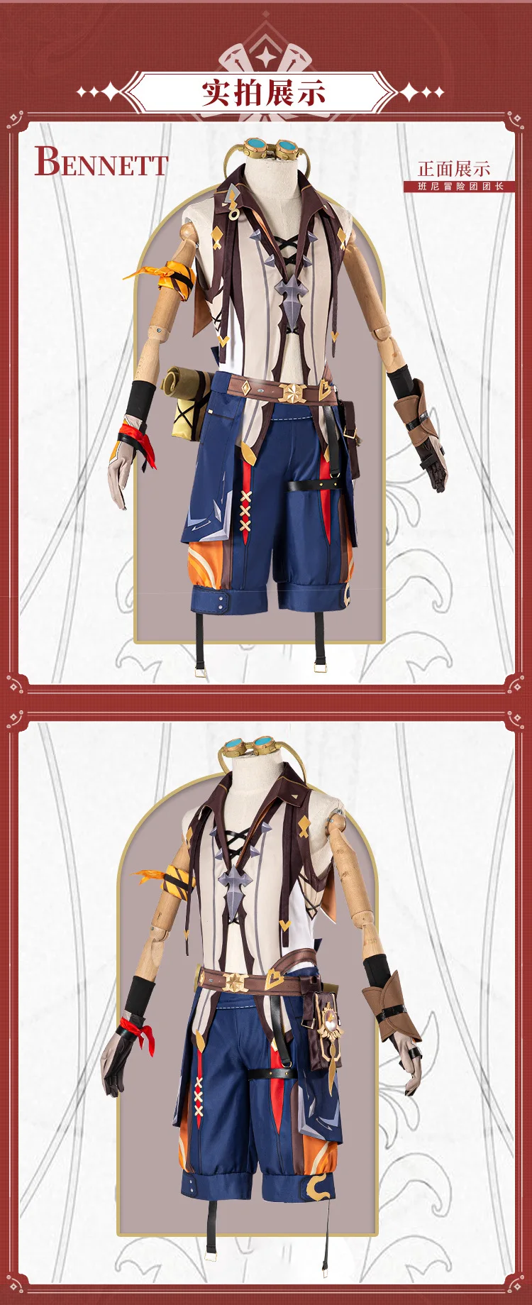Игра Genshin Impact Bennett костюмы для косплея костюм парик Мужская форма хэллоуин костюм Топ Брюки Очки Наряды Аксессуары