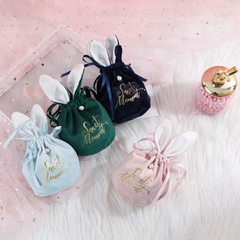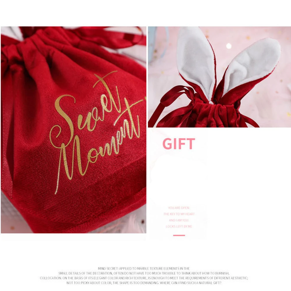 Кролик шоколадные конфеты сумки сладкий Пасхальный День Святого Валентина подарочная упаковка сумка Drawstring Kawaii длинные уши бархатные Ювелирные изделия Органайзер
