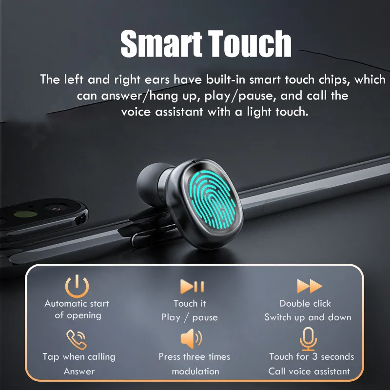 B9 TWS Bluetooth наушники беспроводные наушники с микрофоном спортивные водонепроницаемые беспроводные гарнитуры с сенсорным управлением наушники Телефон <;br/> характеристики продукта:<;br/>1. Второе поколение Bluetooth 5,0 чип <;br/>2. Светодиодный умный крутой кнопочный светильник <;br/>3. 9D стерео HIFI бас объемный <;br/>4. Графеновый пленочный динамик <;br/>5. Выдвижной зарядный ящик <;br/>6. Эргономичный дизайн; Не будет падать при ношении на ухе <;br/>7. Водонепроницаемый; Независимо от того, потеет ли он в тренажерном зале или на открытом воздухе под дождем, он не повредит наушники.<;br/>8. Поддержка одиночного/бинаурального использования (наушники слева и справа встроены микрофоны для независимых голосовых вызовов)<;br/>9. Эргономичная головка наушников с мягкими натуральными силиконовыми наушниками не вызовет боли в ушах и других плохих условий, даже если вы долго Носите наушники.<;br/> список посылка:<;br/>2 * Bluetooth наушники <;br/>1 * зарядный чехол <;br/>1 * USB кабель <;br/>1 * Руководство пользователя <;br/>3 * чашки для наушников (S,M,L размер)