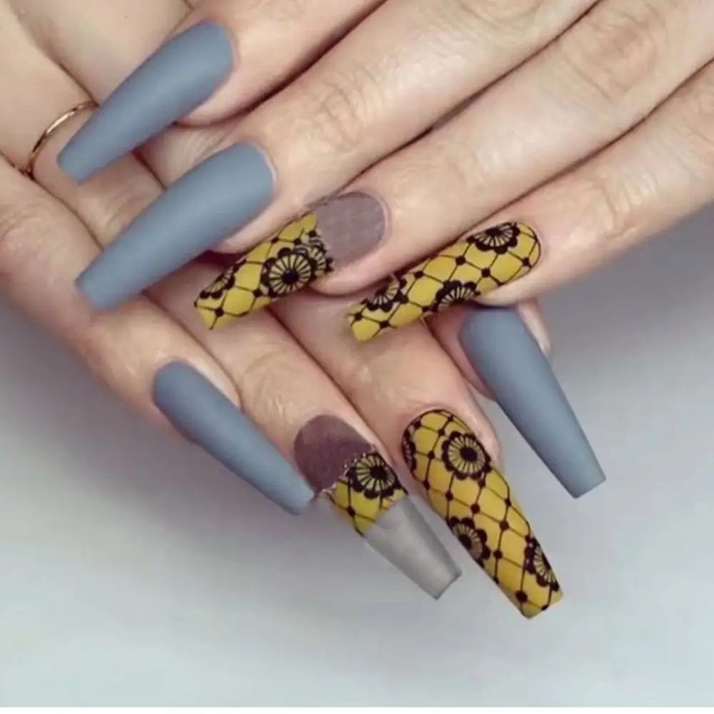 Съемные мраморные градиентные длинные гвозди накладные ногти из зол...