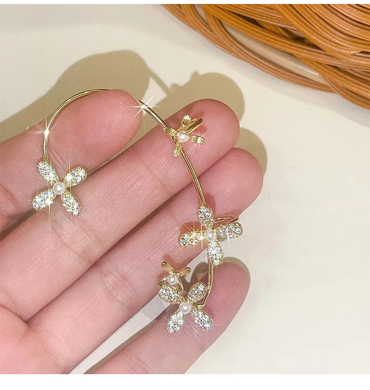 2022 Модные женские серьги, каффы для ушей, милые блестящие циркони...
