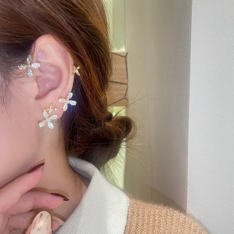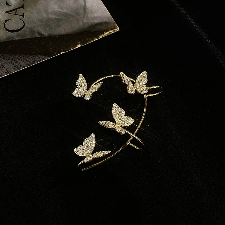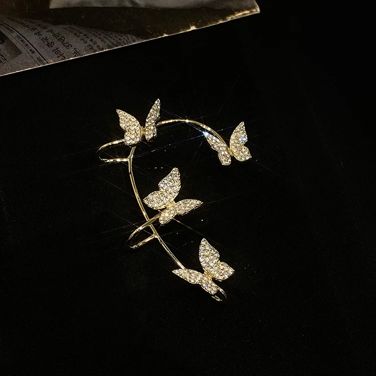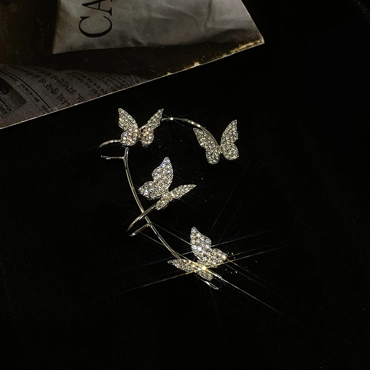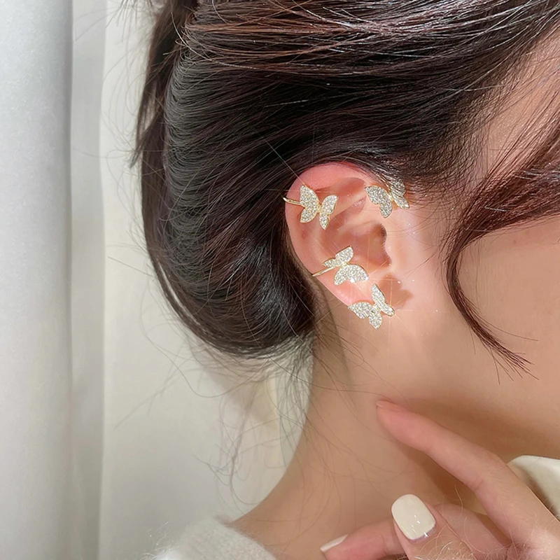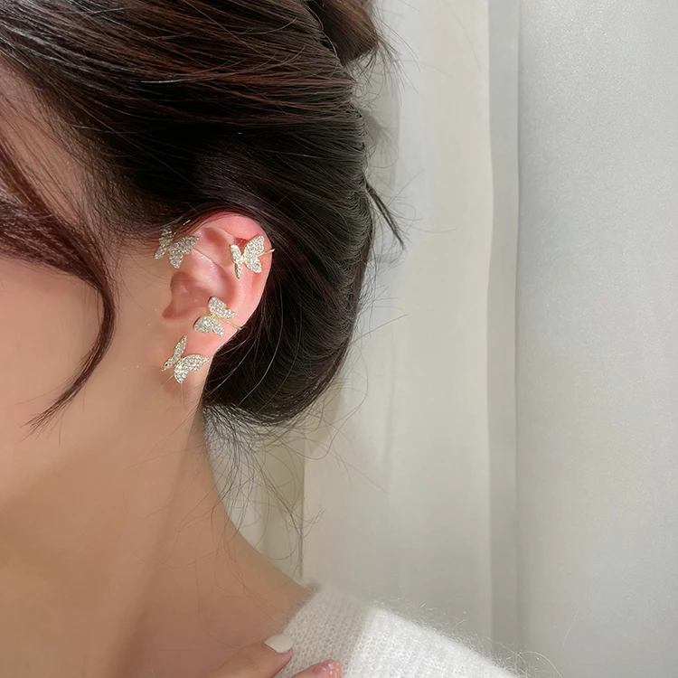 Посеребренные металлические клипсы-бабочки для ушей без пирсинга для женщин, клипсы-манжеты для ушей с блестящим цирконием, новинка 2022, ювелирные изделия