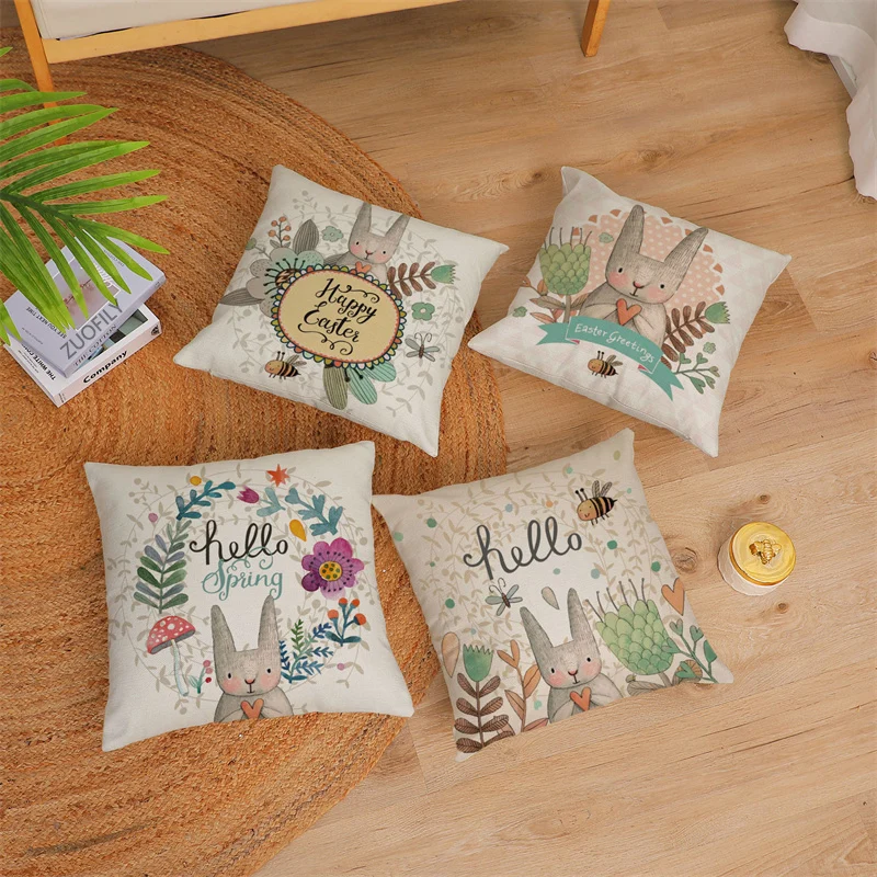 Счастливое пасхальное украшение кролик яйца цветы бухта оконная наволочка праздничные украшения день рождения партия поставок пользу подарков