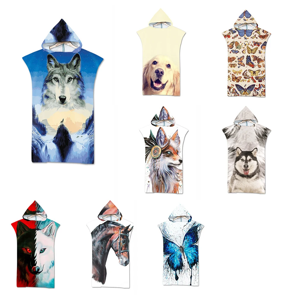 Пляжное полотенце с капюшоном и принтом из микрофибры для взрослых, быстросохнущее солнцезащитное пончо для бассейна, банное полотенце с плащом, банный Халат