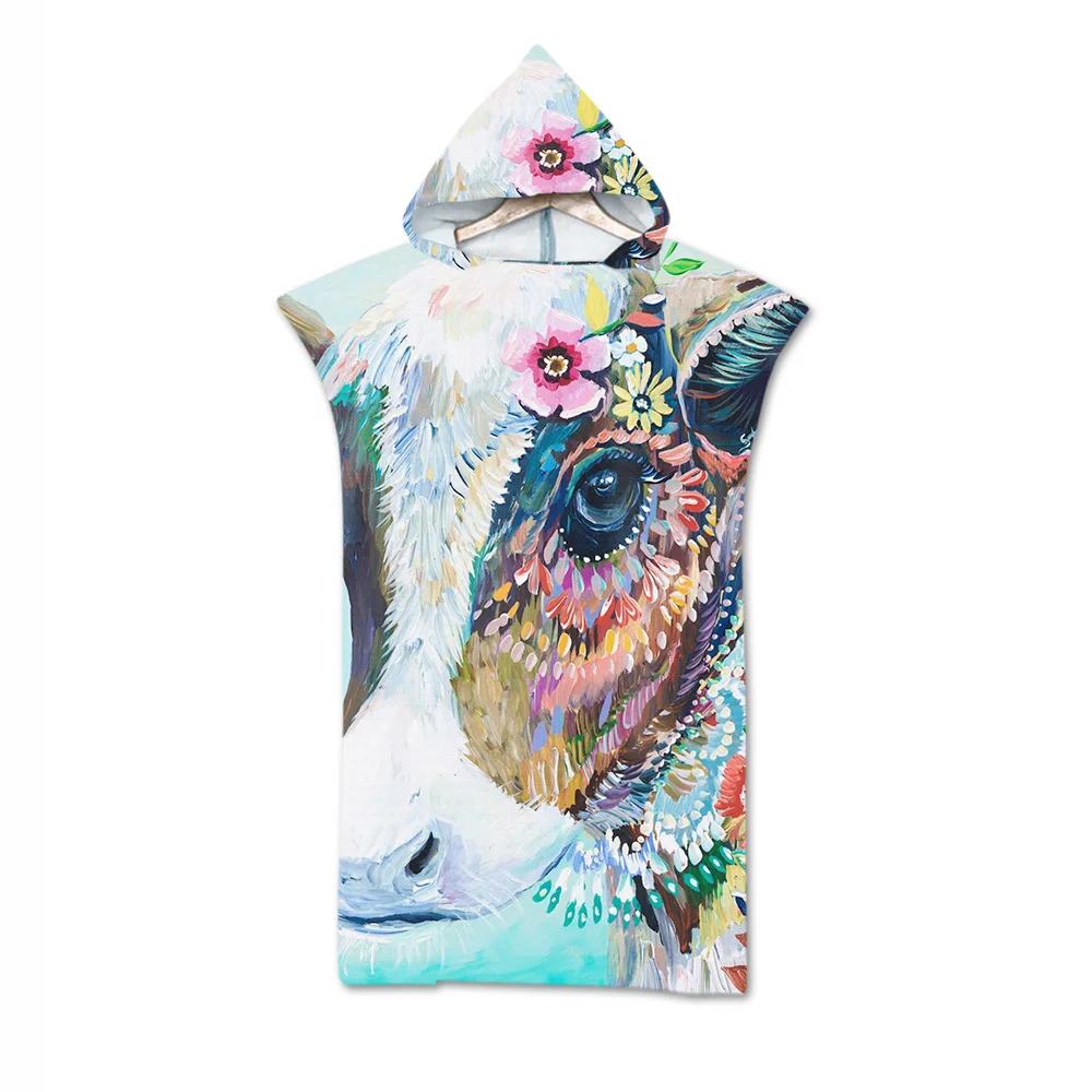 Пляжное полотенце с капюшоном, пончо из микрофибры с 3D принтом, бы...