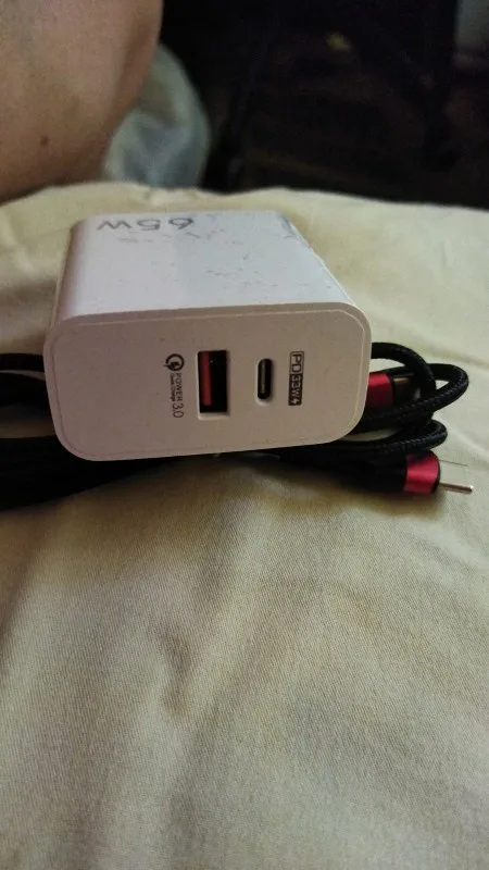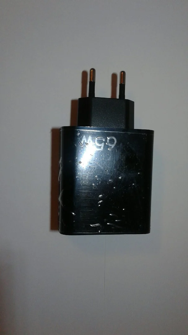 Зарядное устройство соответствует стоимости товара. Хороший товар за свою цену. Но не 65 Вт Зарядное устройство на самом деле, это общее разделенная на два порта. По-прежнему рекомендую, потому что это низкая цена и довольно Быстрая зарядка.