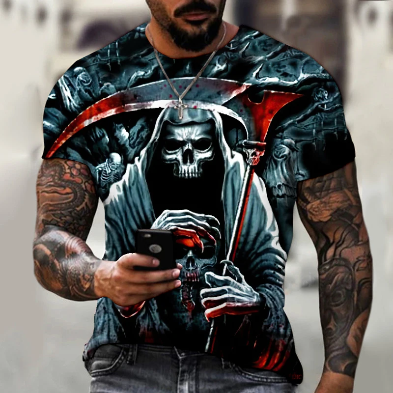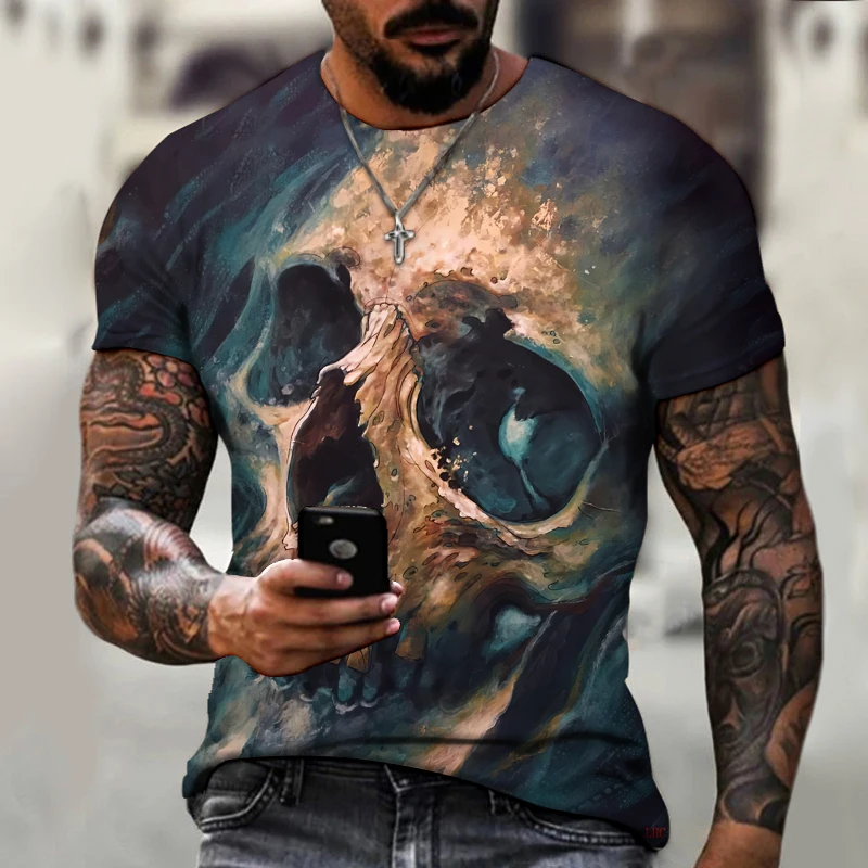 Мужская футболка с 3D-принтом, круглым вырезом и черепом