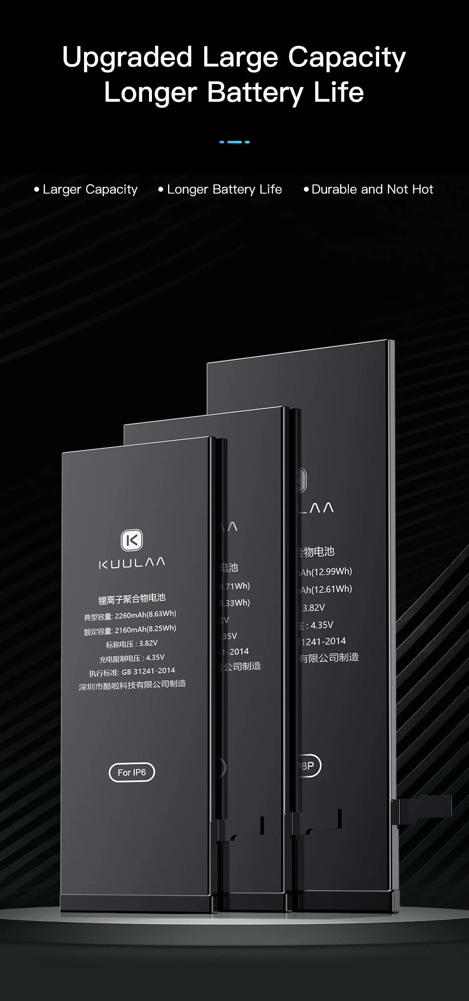 Оригинальный аккумулятор KUULAA для iPhone 6, 6 s, 7, 8, X Plus, Сменный аккумулятор для iPhone 5s 6 s, высокомощный полимерный литиевый аккумулятор