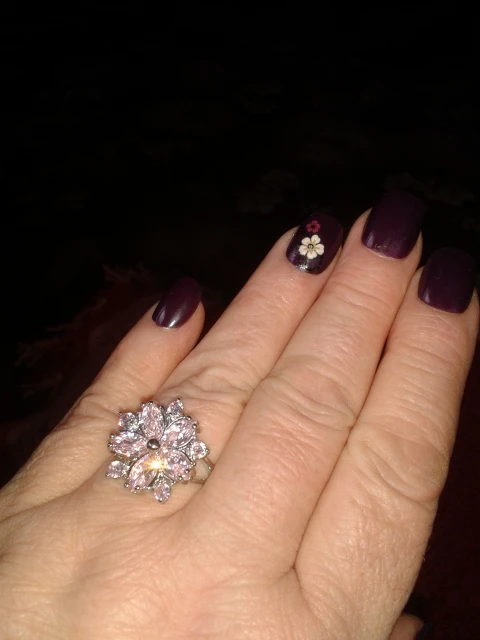 Кольцо очень красивое , сам цветок большой! Очень эффектно выглядит! Всегда заказываю кольцо размер 8 на Алиэкспресс, но это кольцо оказалось великовато на пальц. Нужно было заказывать размер 7, видимо большемерка.