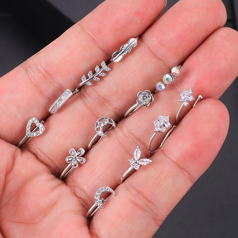 1 шт., поддельный пирсинг-клипса, кольцо для носа, манжета, ювелирное изделие для тела для женщин 2021, новые трендовые ушные манжеты, сердце, крест, цветы, клипса, кольца для носа