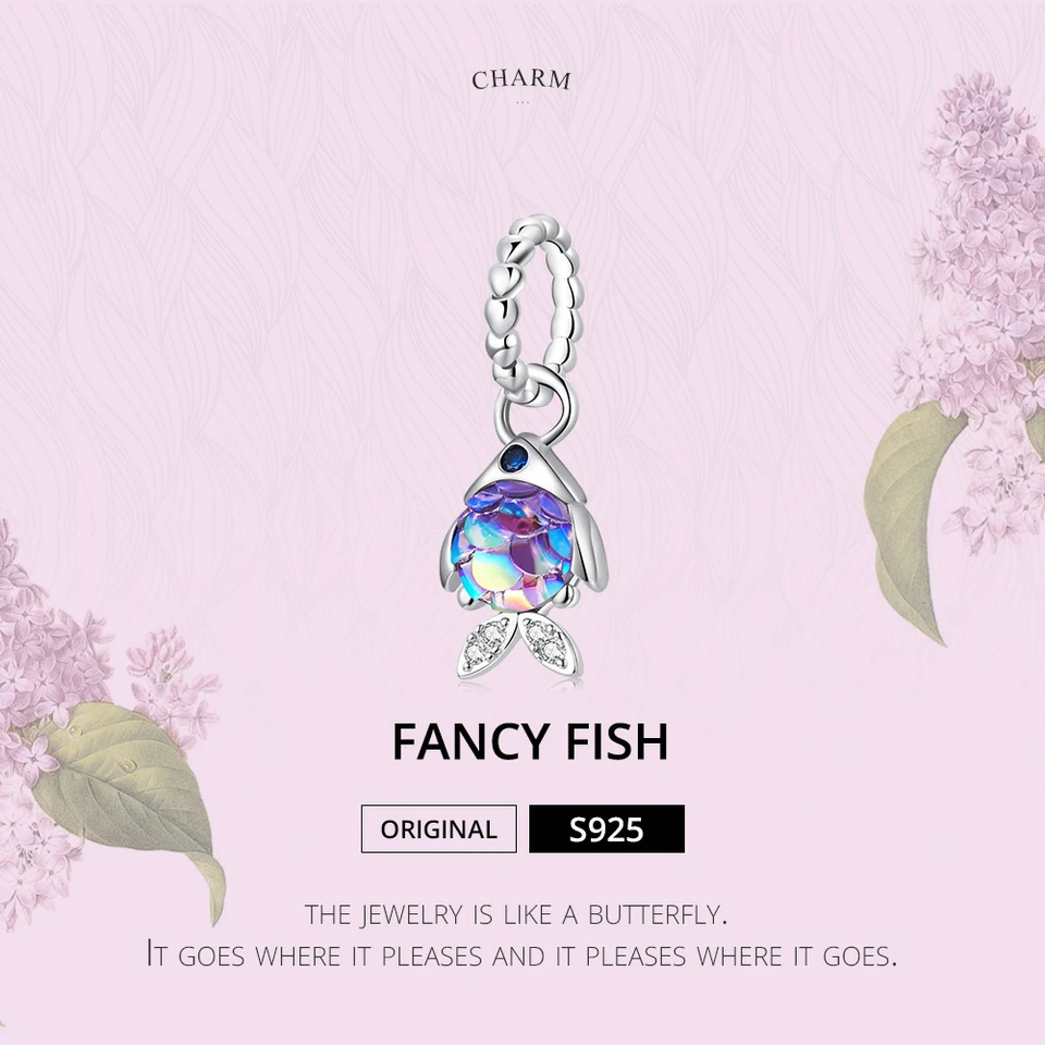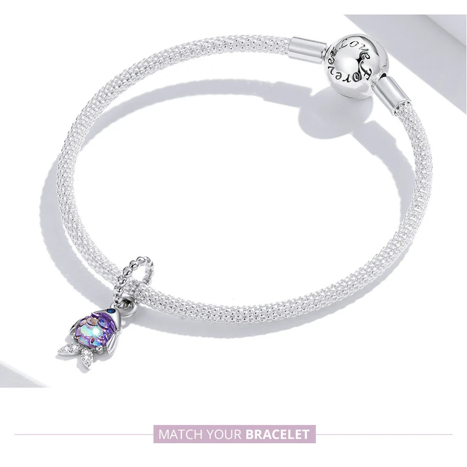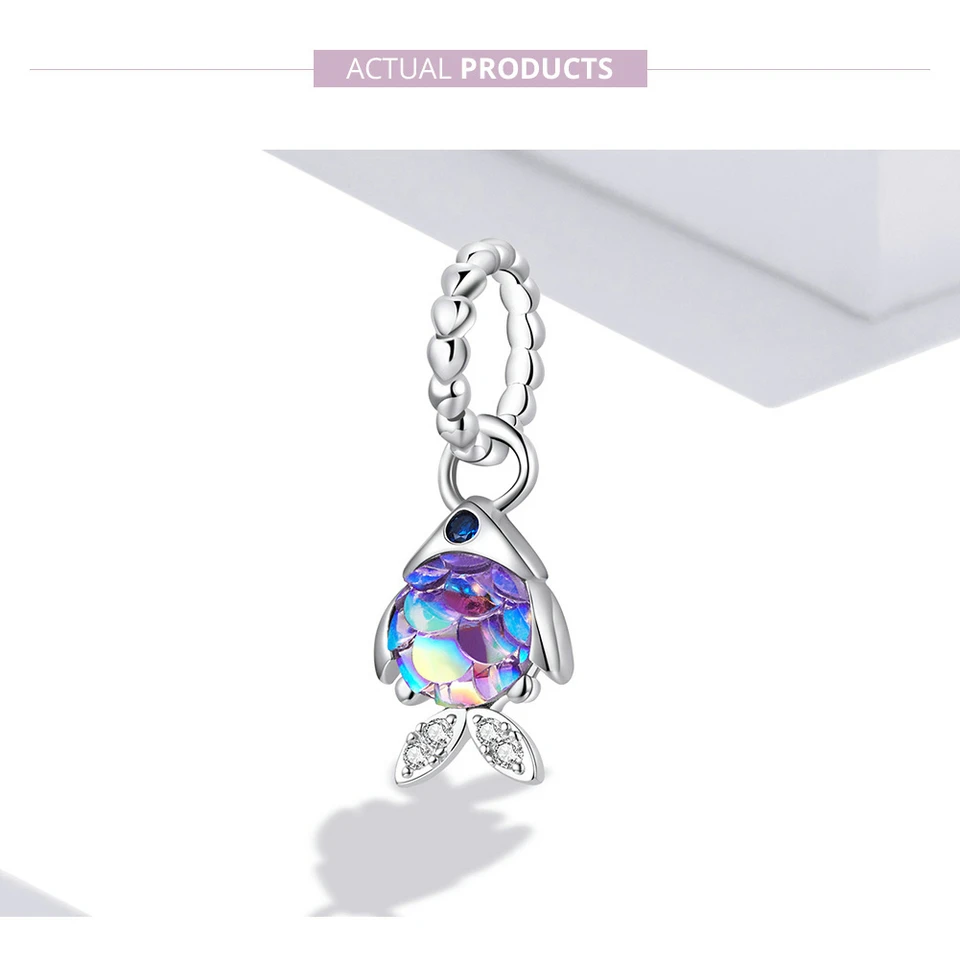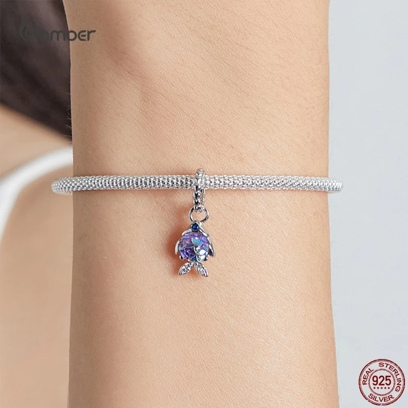 Bamoer, 925 пробы, серебро, модный кулон в виде рыбьей чешуи, любовь, бусины для женщин, цветные подвески в виде животных, оригинал, сделай сам, браслет, ювелирное изделие