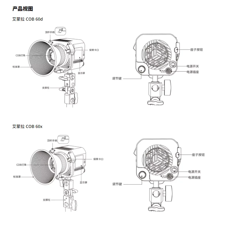 【Bowens крепление дизайн: Amaran COB 60x поставляется в стандартном комплекте с интеллектуальным двойным блоком питания, адаптером питания, опорной колонкой и мини-стандартным покрытием, который может быть использован идеально с светильник Bowens рот светильник аксессуары управления, например: свет Aputure светильник купол SE, светильник Dome Mini II, Aputure фонарь, Мягкий светильник-зонт и т. Д.