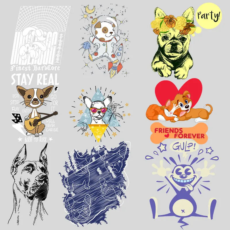 Цветы Космос ракета любовь животные кошка и собака буквы теплопередача ПВХ патч Печатный гладить для одежды DIY аппликации