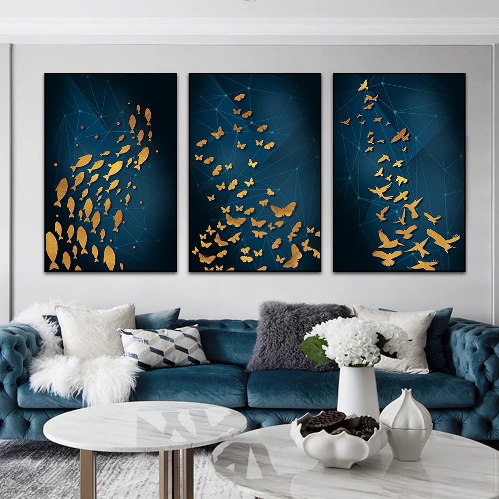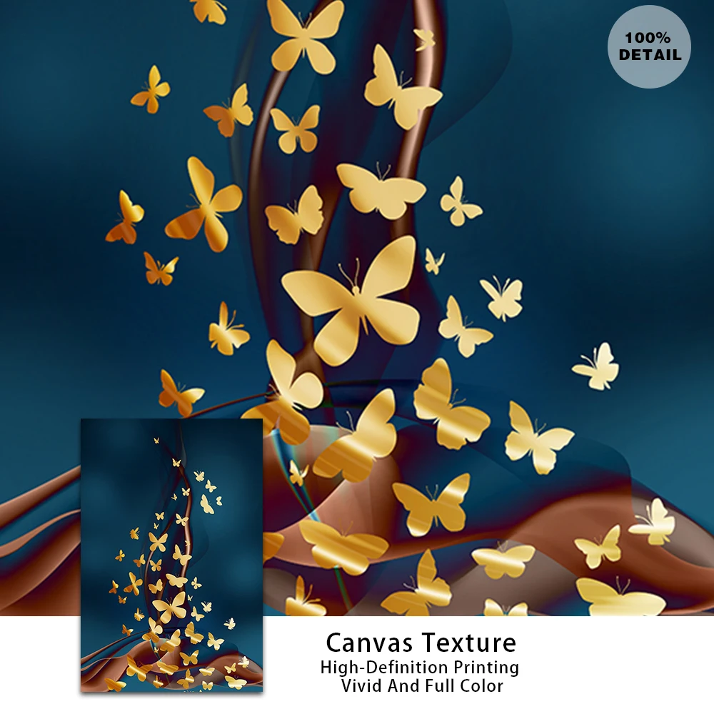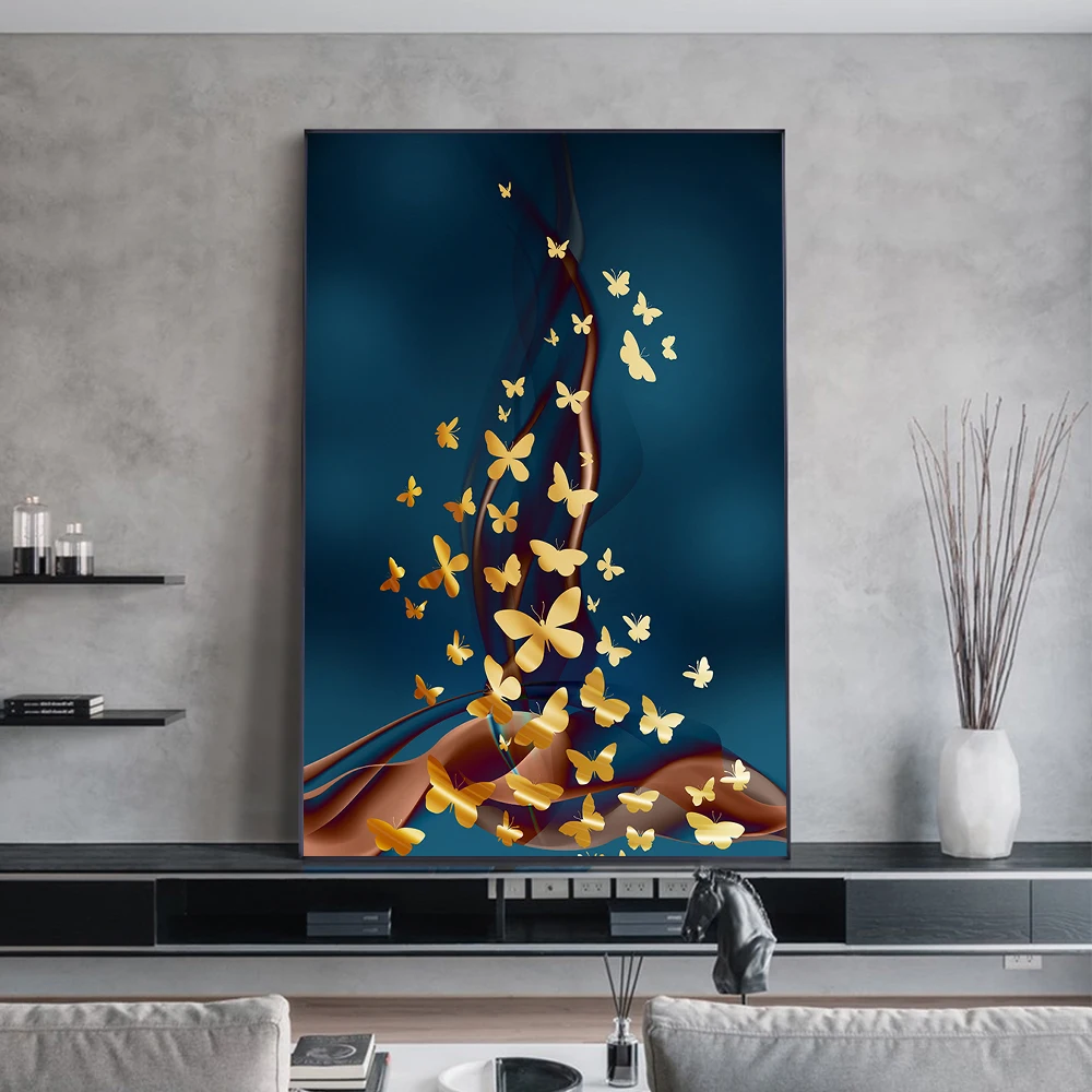 Современные роскошные скандинавские минималистичные плакаты с принтами синяя Золотая Бабочка Картина на холсте картина для гостиной домашний декор куадросов