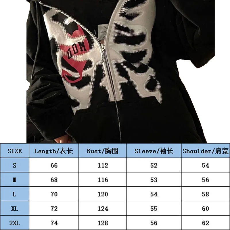 Свитшот Y2K мужской на молнии, готический Свитшот со скелетом, Худи...