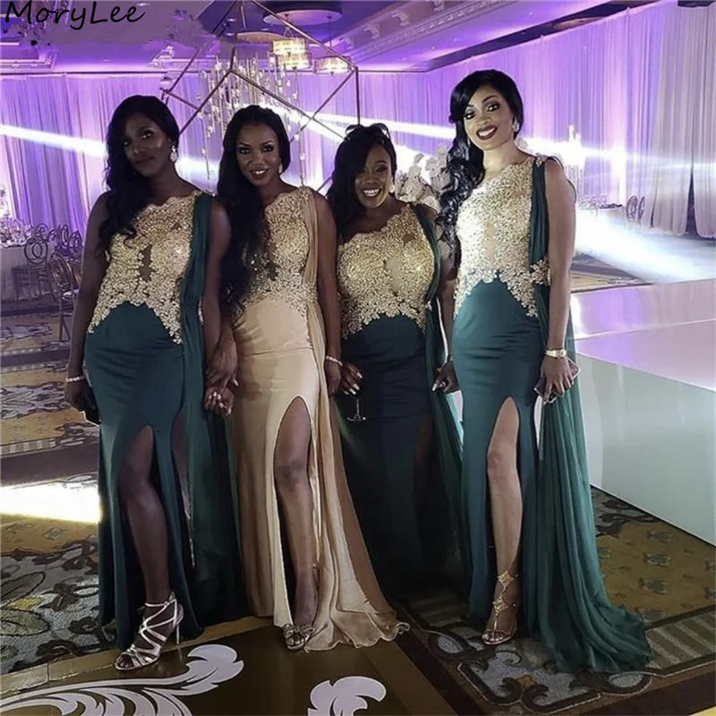Блестящие платья для подружек невесты с открытыми плечами, юбка-год...