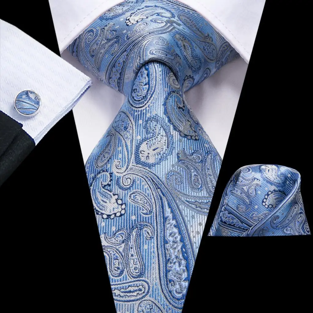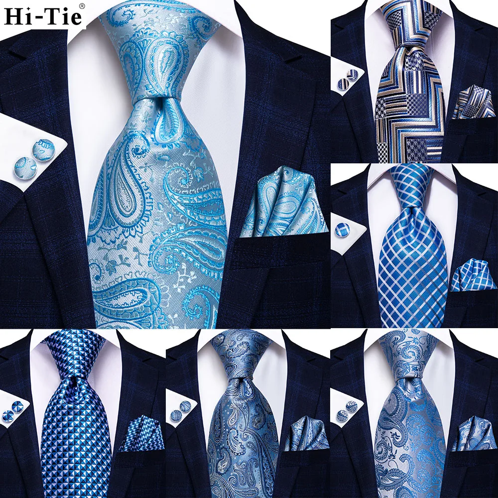 Hi-Tie светло-голубой Шелковый Свадебный галстук с узором пейсли для мужчин Handky запонки мужской галстук набор модный дизайнерский Бизнес Вечеринка Прямая поставка