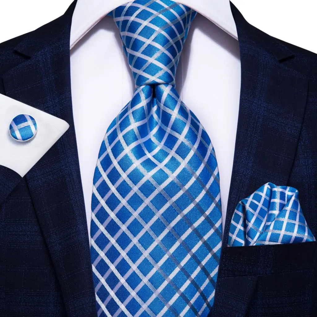Роскошный Серебряный Синий Клетчатый Подарочный галстук для мужчин ...