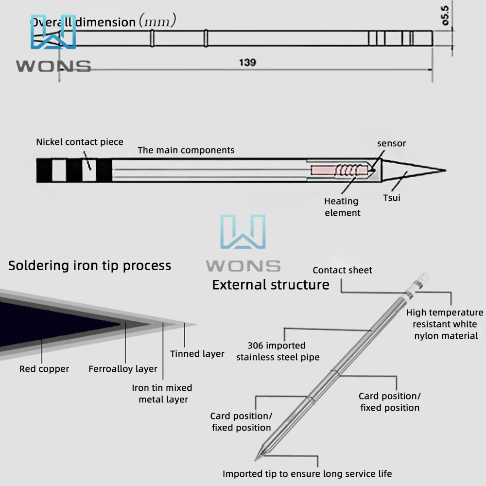 5. Чувствителен к температуре и точен, он установлен внутри маленького размера наконечника паяльника, с очень небольшой потерей тепла, что значительно улучшает эффективность тепла!