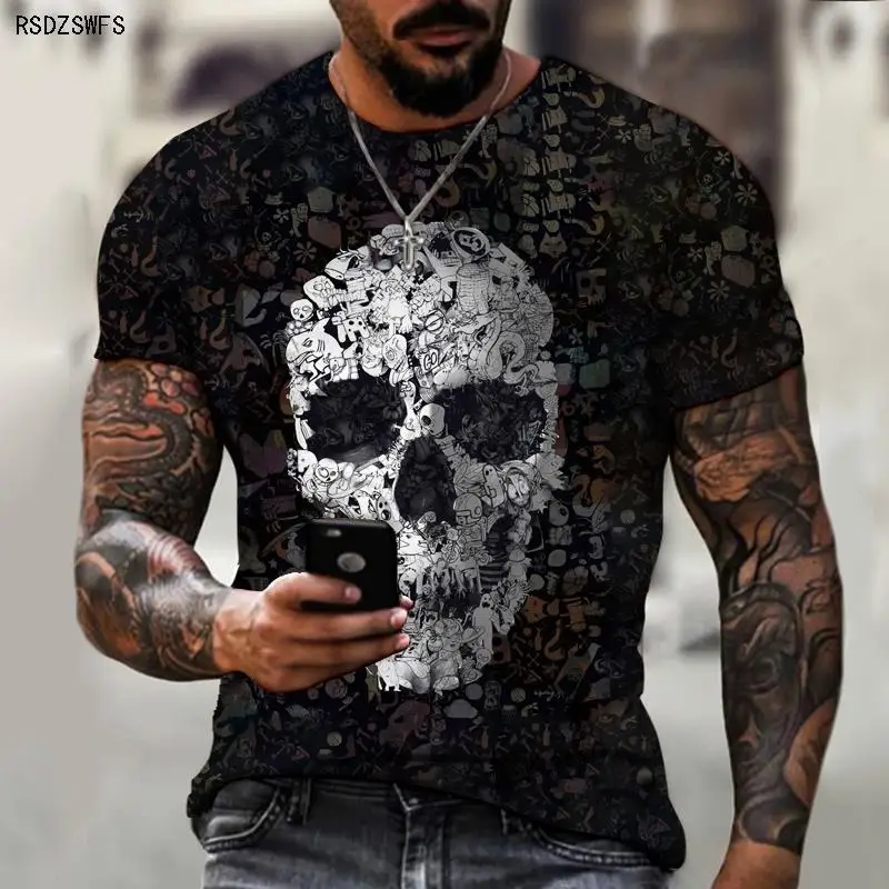 Забавная Мужская футболка с 3D-принтом ужасного черепа, забавная Повседневная дышащая 3d-футболка с коротким рукавом, большие размеры 5XL 2021