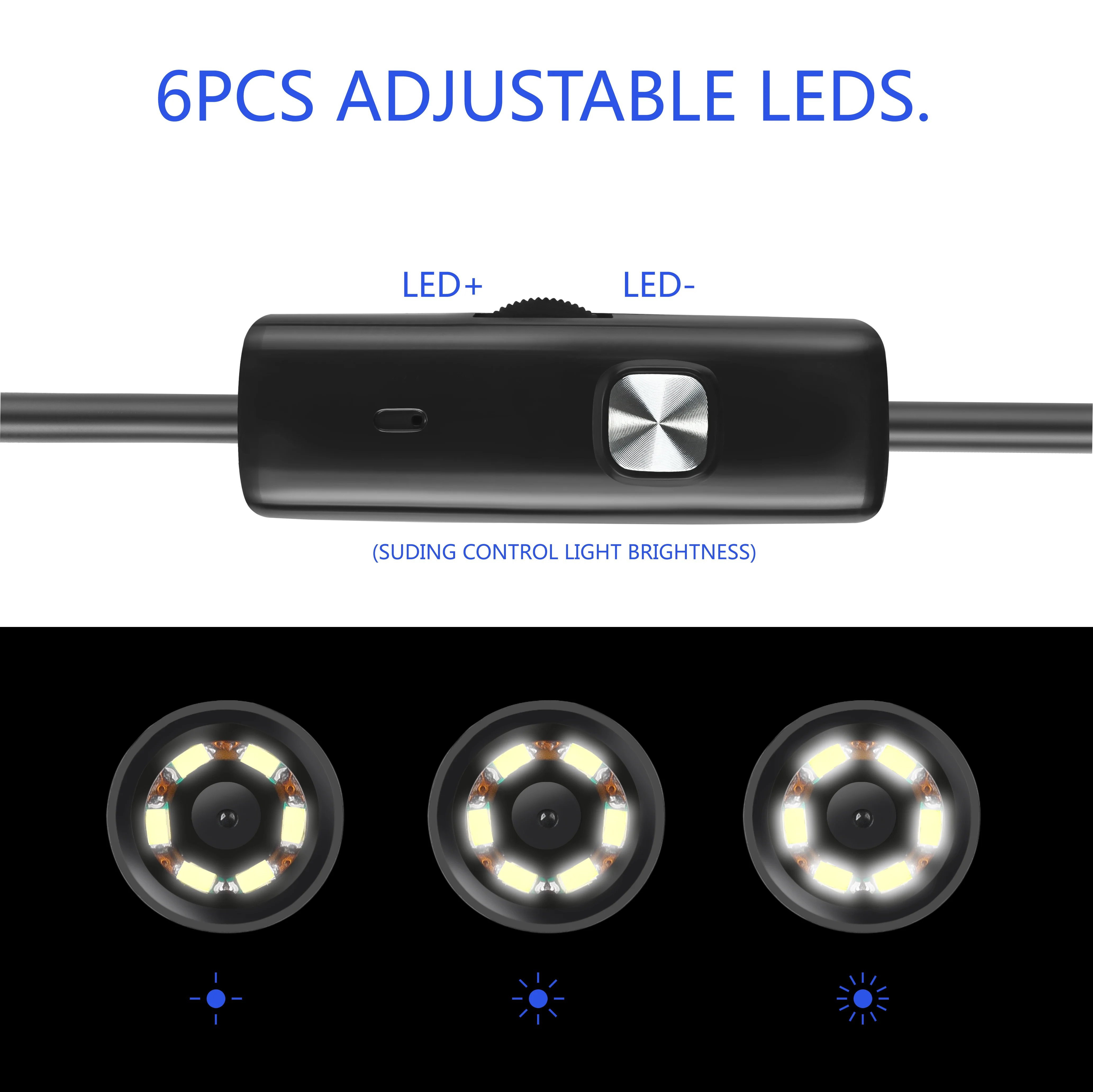 8,0 мм, 720P, эндоскопическая камера, гибкая IP67 водонепроницаемая фотокамера с микро USB, регулируемая камера для телефона Android, ПК, 6 светодиодов